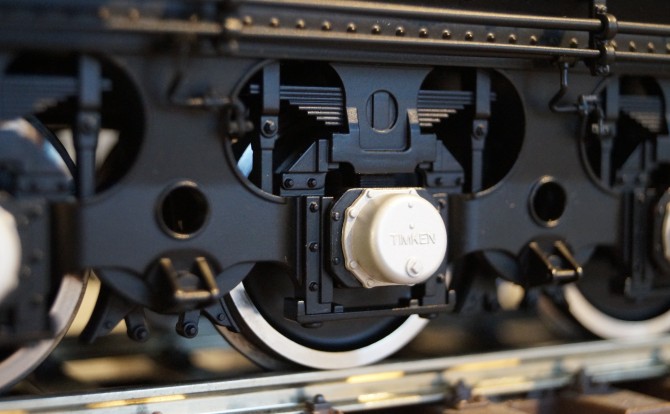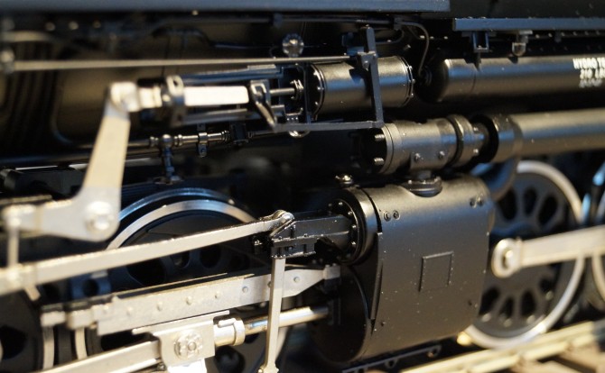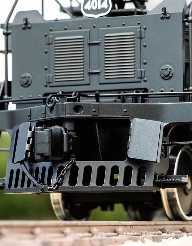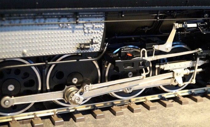 Das Modell bildet das Fahrwerk der mächtigen 4-8-8-4-Konfiguration der Gelenklokomotive in jedem Detail nach. Die Dampfleitungen zu den Zylindern sind flexibel ausgelegt um die Kurvengängigkeit zu erhöhen. Dabei kann das Modell trotz der Länge den kleinen Spur 1 Radius mit 1020 mm durchfahren. Empfohlen wird allerdings ein Mindestradius von 1394 mm um den Anlagenbau nahe der Gleise (Geländer, Masten, Weichenausstattung etc.) nicht zu gefährden.