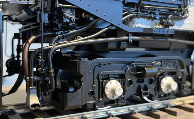 Alle Leitungen und Bauteile wie Ventile, Generatoren, Pfeife, Griffstangen sind aus Metall gefertigt und separat angesetzt. Die Klappen der Dome lassen sich öffnen.