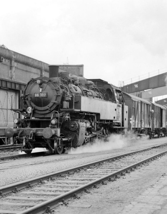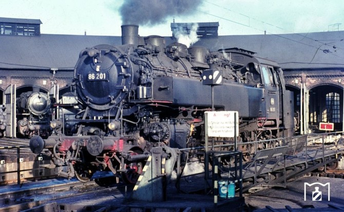 Bild unten: 86 201 wendet 1969 im Bw Hildesheim um einen EK-Sonderzug zu bespannen. Copyright: Bernd Backhaus/ Slg. Eisenbahnstiftung