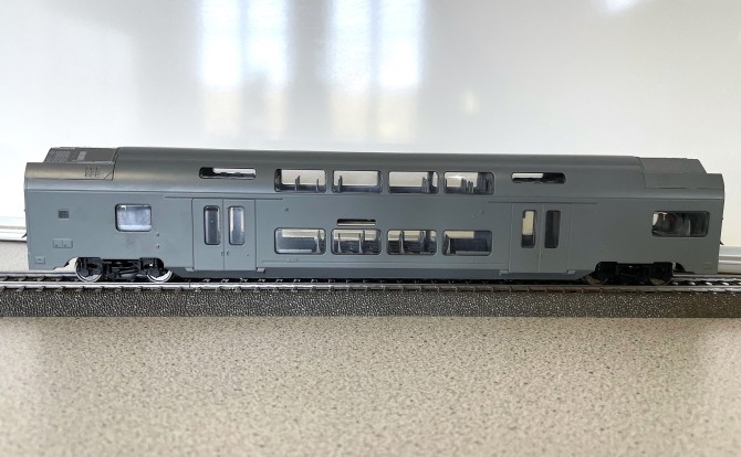 Die speziell für dieses Modell neu entwickelten Pantografen sind äußerst filigran und - selbstredend - vorbildgerecht nachgebildet. Der Dachaufbau mit allen Aggregaten, die Wagenübergänge mit den Faltenbälgen und Verbindungsleitungen und auch der Fahrzeugboden werden hochdetailliert und variantengerecht ausgeführt sein.