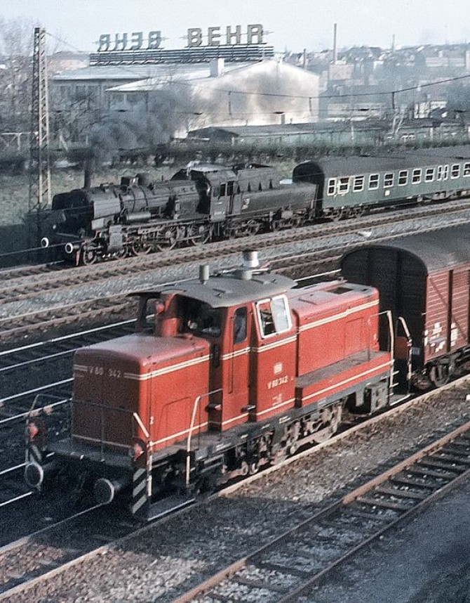 Einträglich nebeneinander - die V 60 118 und ihre Vorgängerin in Form der V 36 110. copyright: Carl Bellingrodt / Slg. Eisenbahnstiftung