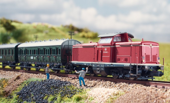 Als etwas vereinfachtes Modell rollt die Diesellok der Baureihe 216 - "Lollo"- ins MINITRIX Programm. Trotz einfacherer Bedruckung kann die Lok mit Spielwert aufwarten. Sie verfügt über Sound- und LED-Lichtfunktion