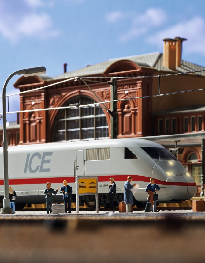 Der ICE ist ohne Frage der bekannteste Zug auf deutschen Gleisen. Mit dem Set des ICE bietet Märklin einen über einen Meter langen 4-teiligen ICE mit Bordrestaurant. Dieser Zug ist werkseitig schon mit einem Sounddecoder ausgestattet, der ein Signalhorn und die Bahnhofsdurchsage abspielen kann.